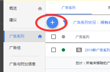 点击该加号,即开始建立您的Google Ads 广告系列。